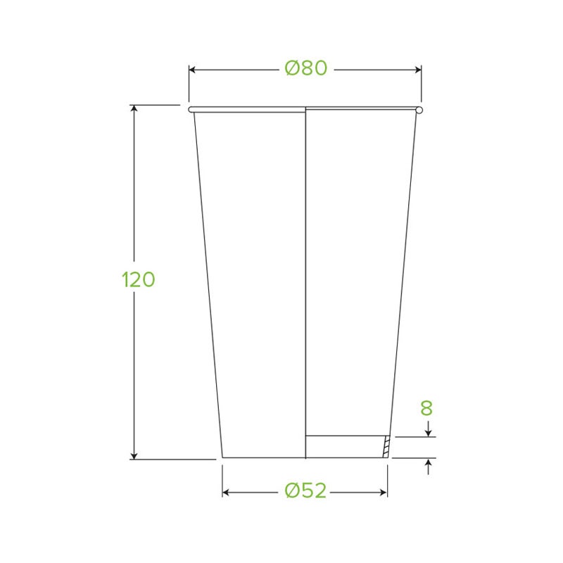Paper BioCups are lined with a unique Aqueous dispersion coating. BioPak white paper cups are certified home and industrially compostable (AS5810 & AS4736). This 12oz (80mm) white cup fits our small lids.