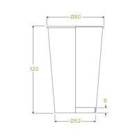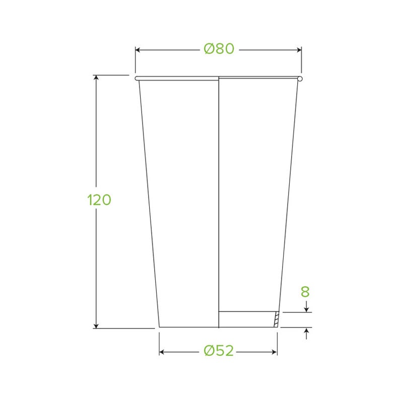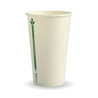 Paper BioCups are made from premium paperboard lined with a plant-based bioplastic. BioPak paper cups are certified industrially compostable. This 12oz (80mm) White Green Line cup fits our small lids.