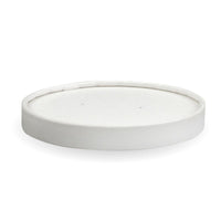 12oz-32oz white paper bowl lids are lined with a plant-based bioplastic, not fossil-fuel plastic. Certified industrially compostable. Suitable for hot/cold food and soup-safe.